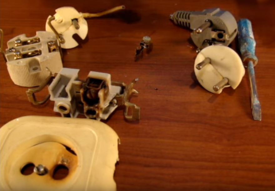 Замислено, когато се появят искри, е достатъчно да подредите гнездата - ако ги разглобите, тогава какво да направите по-нататък обикновено се вижда с просто око. Място с лош контакт се отличава по мащаба от разтопяването на изолацията, а самото е втвърдено и чупливо. Ако има малко въглеродно отлагане, тогава може просто да се почисти и затегне болтовите връзки. Когато става въпрос за сериозно топене на изолацията на проводниците или корпуса на гнездото, силно се препоръчва да ги замените.