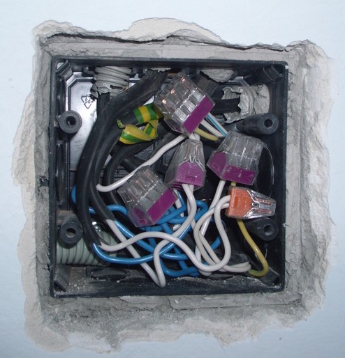- Второто нещо, което трябва да запомните е, че електрическата верига е повредена в слаби точки, които са обрати и всякакви други връзки. Ако всичко работи правилно вътре в контакта, тогава трябва да се търси допълнителна отворена верига не в стената, а в разклонителната кутия. В този случай не е необходимо изгорелият контакт да бъде видим веднага - вероятно е за това ще трябва да развиете изолацията върху усуканите проводници.