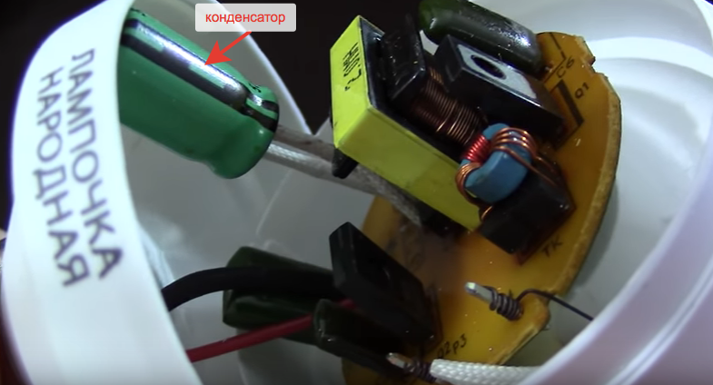 Именно този кондензатор е причината за трептенето на изключената лампа. Известно е, че кондензаторът е устройство за съхранение на енергия. С увеличаването на заряда напрежението върху неговите плочи се увеличава. Когато стойността му надвишава прага за работа на електронния ключ, лампата се включва, придружена от светене. Енергията, съхранявана в кондензатора, бързо се изразходва. Ето защо сиянието е само под формата на проблясъци.