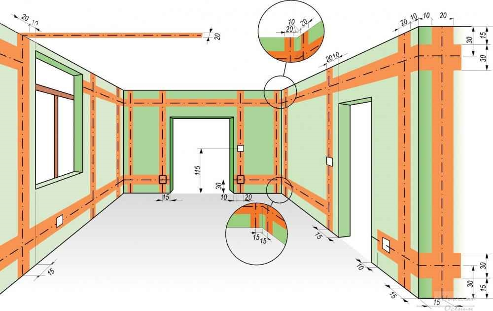 - При инсталиране на конвенционални проводници със защитно покритие в хоризонтална посока интервалът между скобите не трябва да бъде повече от 25 см, а във вертикална посока - 40 см.Разстоянието от електрическия елемент до най-близкото до него резе не трябва да надвишава 10 cm.