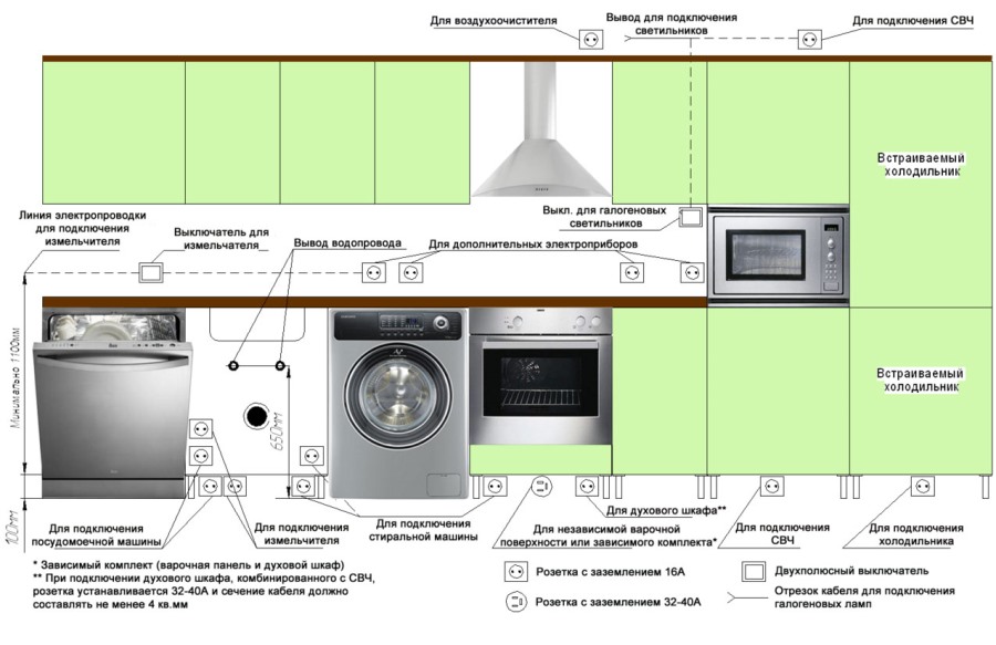Почти всяка модерна кухня разполага с голям брой електрически уреди. Следователно, първата стъпка в интериорния дизайн е определянето на местата за всеки от тях. Повечето от устройствата са инсталирани на кухненски комплект.