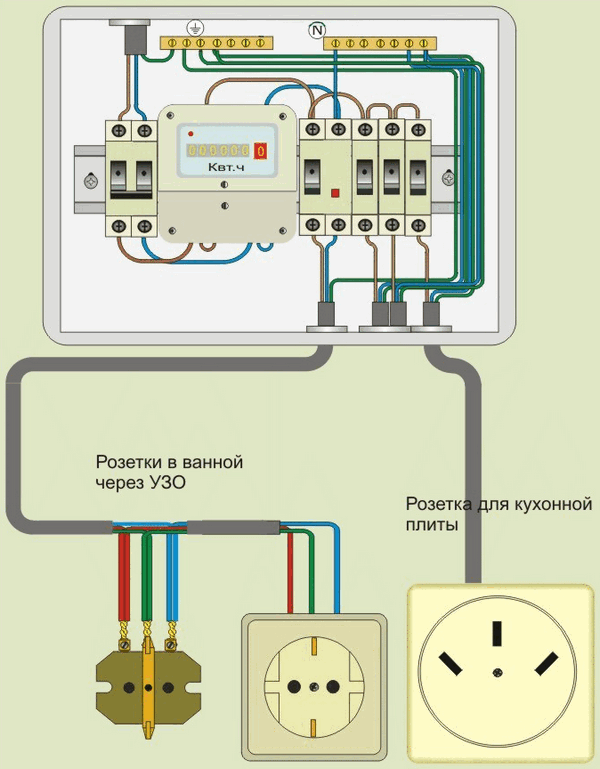 Въз основа на тези данни можете да изчислите не само целия проводник в кухнята, но и какъв тип гнездо е необходимо за свързания плот. Ясно е, че ако напречното сечение на проводника е избрано от край до край, тогава повече от едно устройство не може да бъде свързано към един изход, дори и двоен, следователно, в случай на такава необходимост, окабеляването в кухнята трябва да бъде избрано с марж.