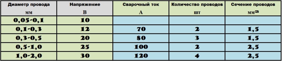 Ако устройството ви позволява да регулирате напрежението и тока, тогава "по око" какви стойности да настроите може да се определи от диаметъра на проводниците и техния брой.