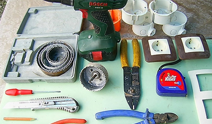 Когато се извършват мащабни работи по окабеляване, най-вероятно всички необходими инструменти вече са под ръка, но ако на дневен ред е само инсталирането на гнездови кутии, тогава ще е необходимо следното: