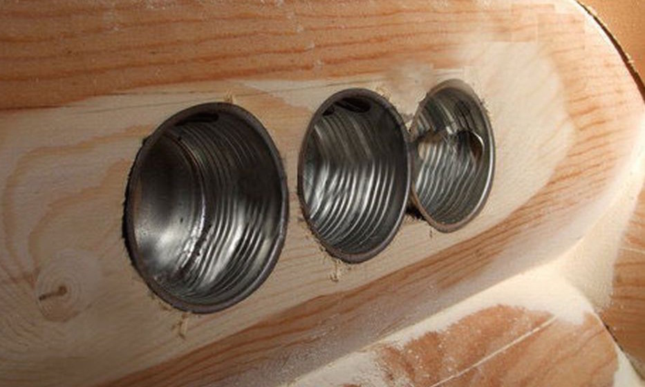 Въпреки че тук бормашина не е полезна, определено ви е необходима тренировка - с коронка за пробиване на кутиите с гнезда или обикновена тренировка. Мястото на пробиване е маркирано и се изрязва дупка, а диаметърът му трябва да съвпада с размерите на гнездото. Телта се извежда и се вкарва в резбата в гнездото.