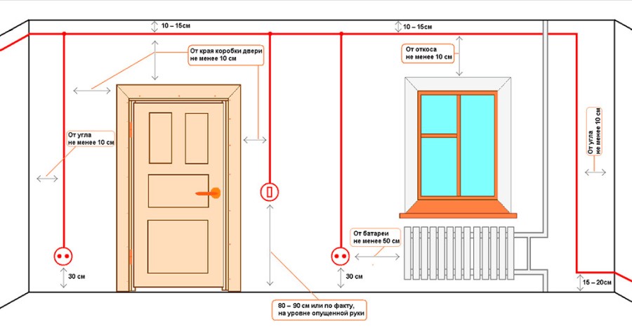 Правилата са създадени, за да се ръководите от тях, затова ще ви дадем основни препоръки за това какво разстояние от пода до изхода или превключвателя е необходимо в различни помещения: