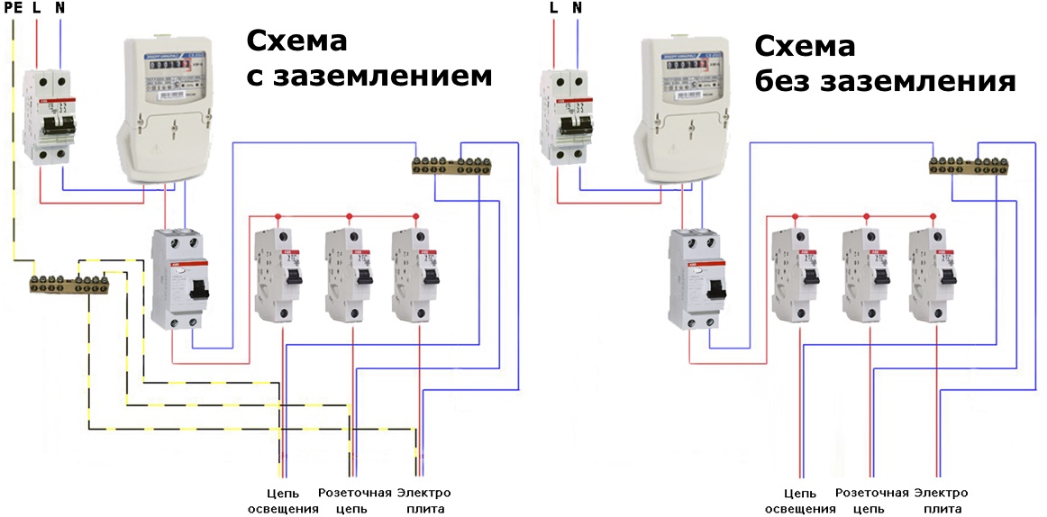 Устройството с остатъчен ток се отключва, ако установи ток на изтичане, т.е. когато се подава повече ток към електрическата верига през фазовия проводник, отколкото той излиза през нулата. RCD връзката може да се извърши в къщи със и без заземяване - за да извършите проверки, трябва да разберете разликата между тези методи за защита на домакински уреди и човек.