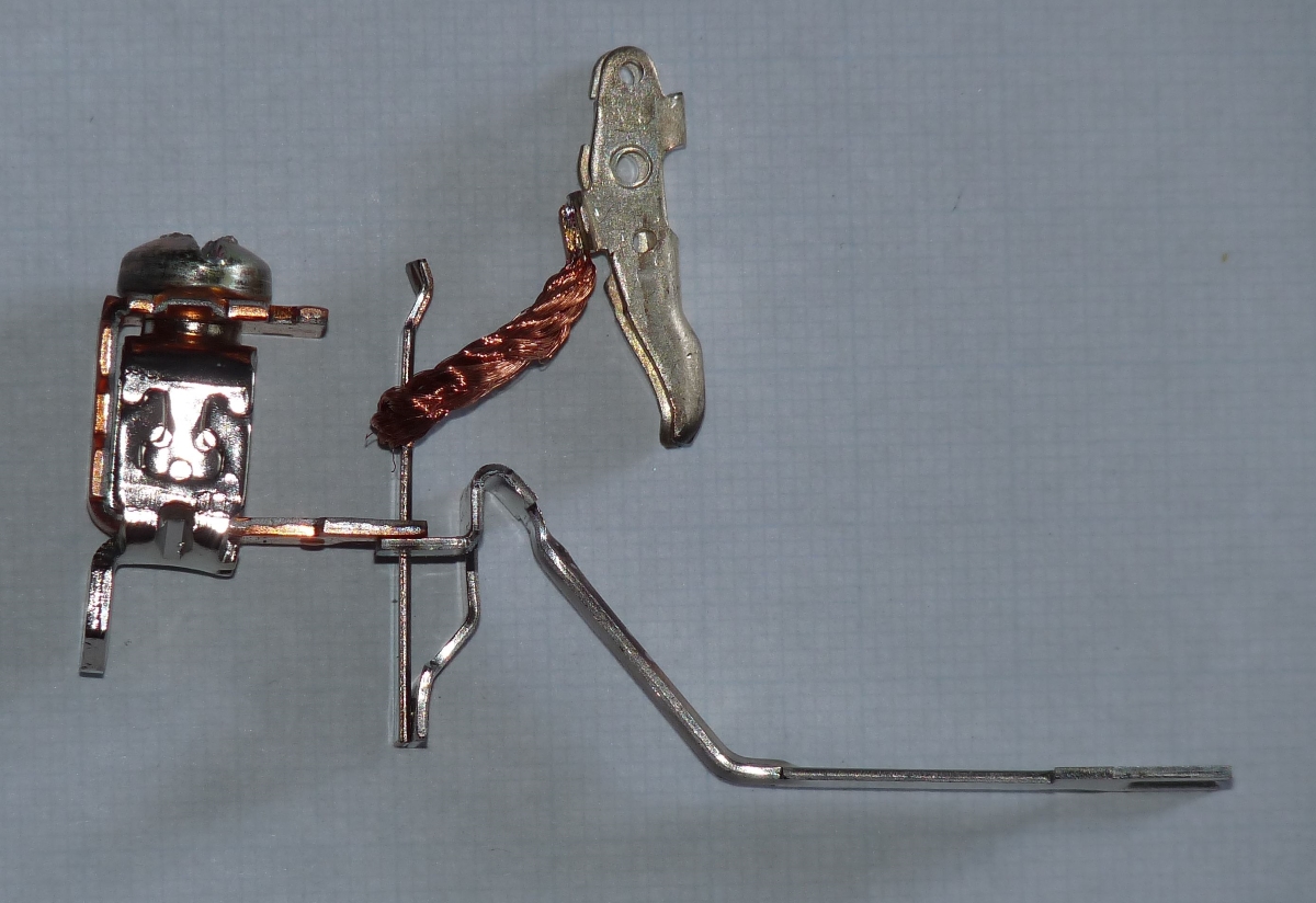 Този елемент се нагрява под въздействието на мощен ток, става пластмаса, огъва се и задейства машината.