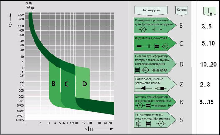 Времето за изключване на защитния прекъсвач зависи от големината на претоварването: с леко превишаване на нормата може да отнеме час или повече, а със значително излишък - няколко секунди.